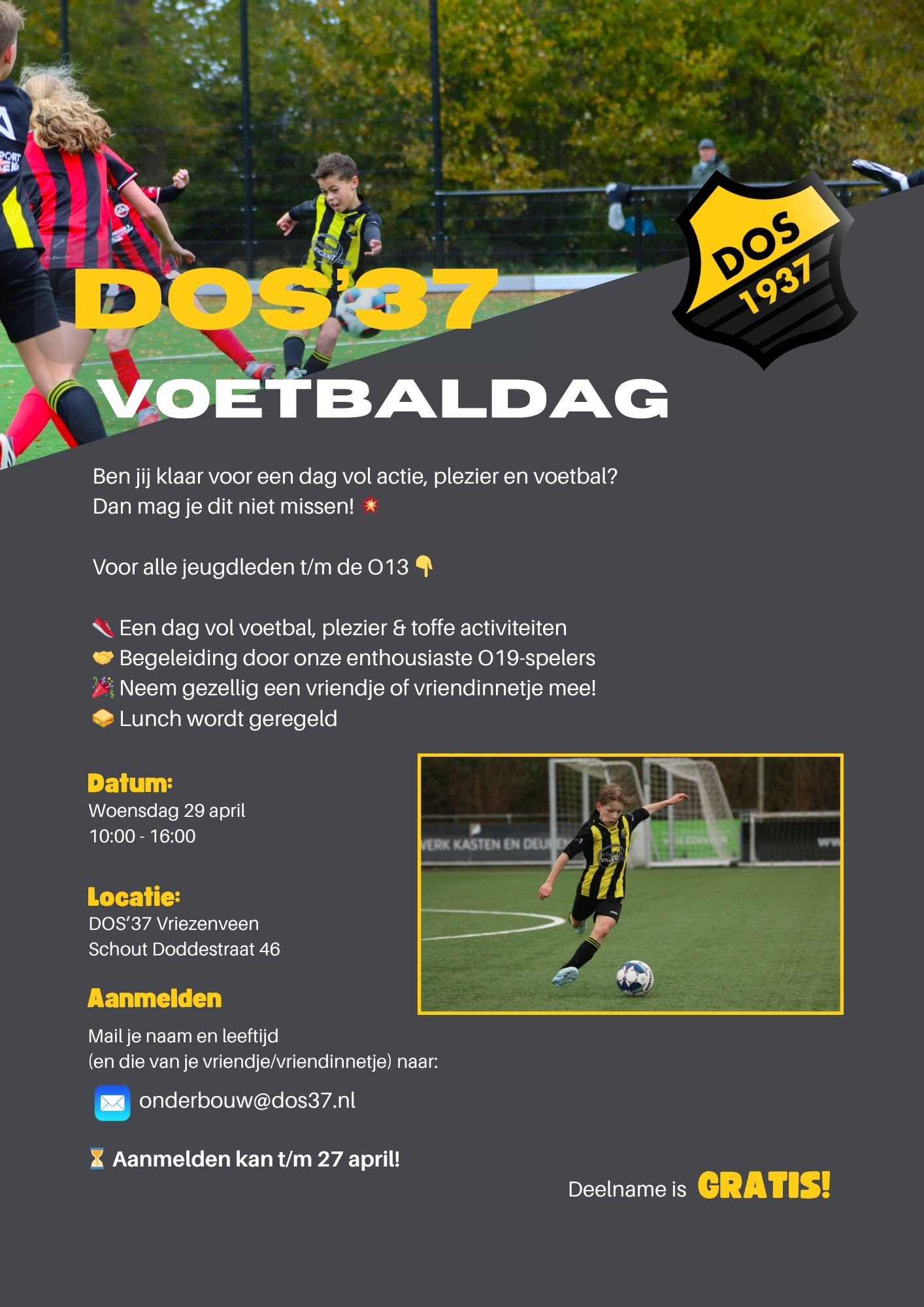 Woensdag 29 april voetbaldag DOS'37 van 10:00 uur tot 16:00 uur.