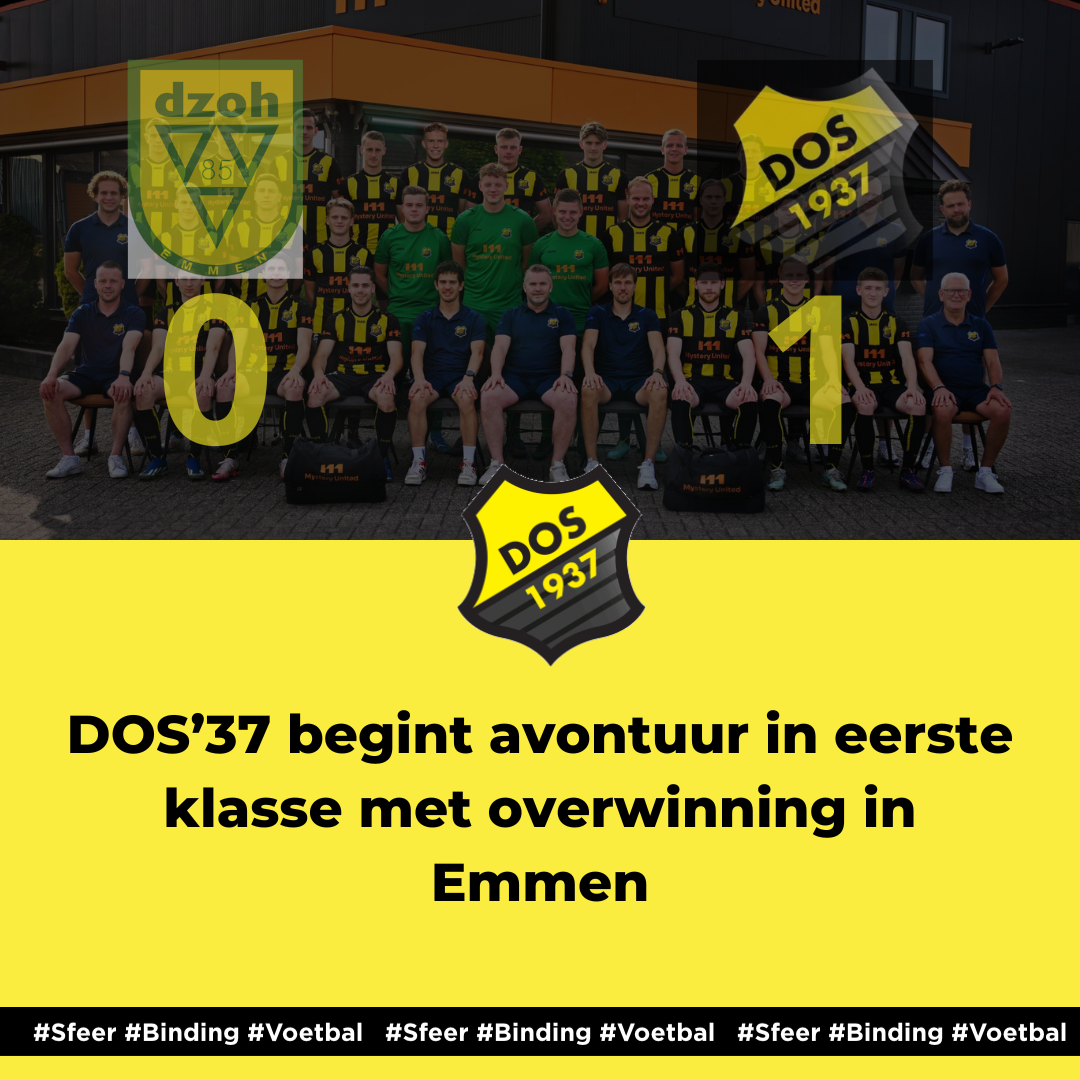 Met deze late treffer pakte DOS’37 haar eerste overwinning in de eerste klasse: een belangrijke en verdiende beloning na een spannende strijd in Emmen.