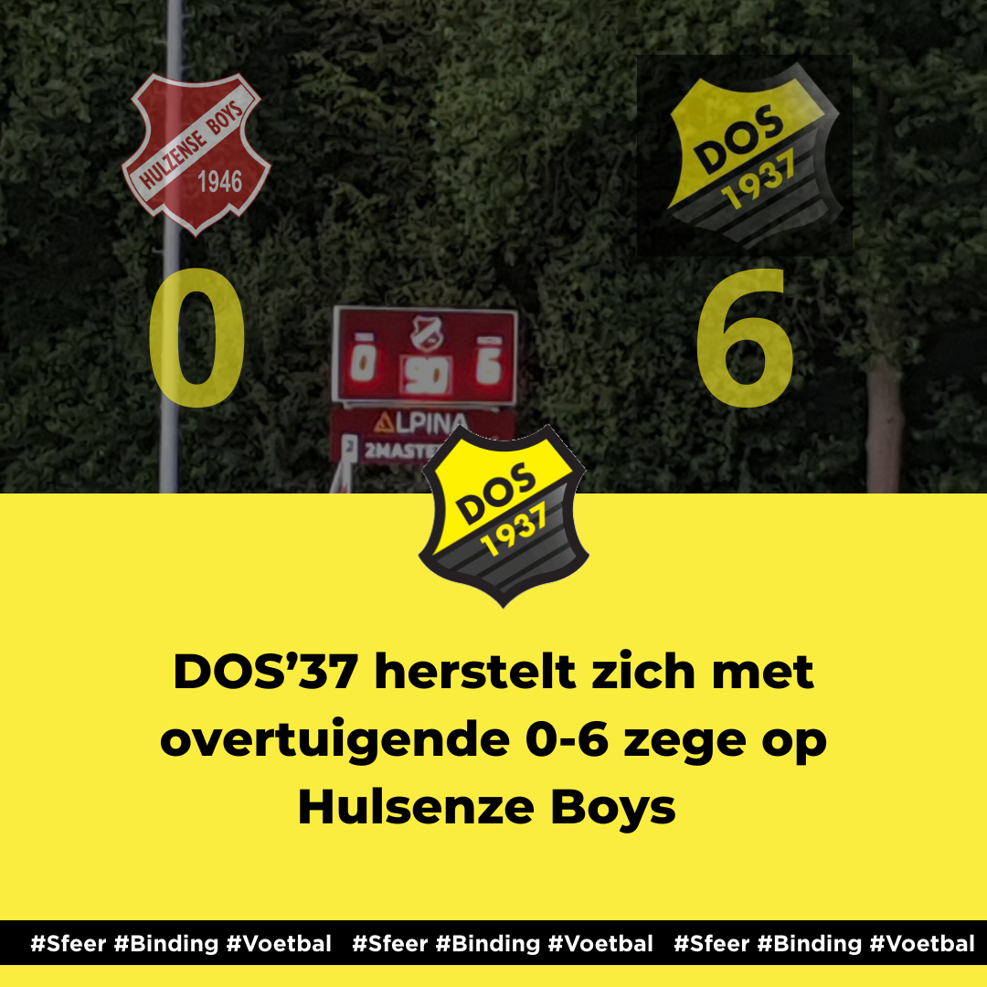 Na de teleurstellende nederlaag tegen Stevo en VV Hellendoorn heeft DOS’37 zich uitstekend hersteld. Op bezoek bij Hulsenze Boys boekten de mannen van Gerard Kocks een overtuigende en verdiende 0-6 overwinning.
