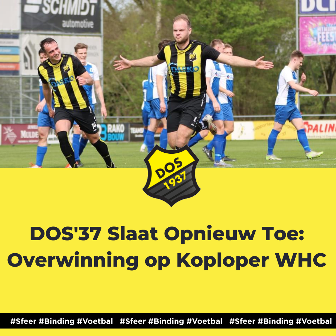 Na de rust kwam DOS'37 sterker uit de kleedkamer. De eerste kans na rust was voor Koen Nijkamp, maar zijn schot werd goed gestopt door de keeper. Het bleef op en neer gaan, maar in de 62e minuut kwam DOS'37 op voorsprong door Koen Nijkamp. Een geweldige actie aan de linkerkant van Sander Thomas resulteerde in een perfecte voorzet op het hoofd van Koen Nijkamp die de bal goed en vallend in het doel kopte. WHC was geschrokken en leed steeds meer balverlies. DOS'37 werd steeds gevaarlijker. In de 72e minuut leidde balverlies van WHC op het middenveld tot een kans voor Koen Nijkamp die alleen in volle snelheid op de keeper af mocht. Hij omspeelde de keeper en scoorde beheerst de 3-1. Een mooie voorsprong voor de thuisploeg. DOS'37 wisselde om de voorsprong te behouden. WHC probeerde het nog wel, maar slaagde er niet in om te scoren en DOS'37 won ook van de koploper. Dit was alweer de vierde overwinning op rij voor DOS'37. Volgende week mogen ze op bezoek bij de nummer 2 van 1H, DZC’68. Maar vandaag hebben de mannen van Jeroen Niks en Geerten Brinkman belangrijke punten gepakt en zijn ze naar de zevende plek geklommen.