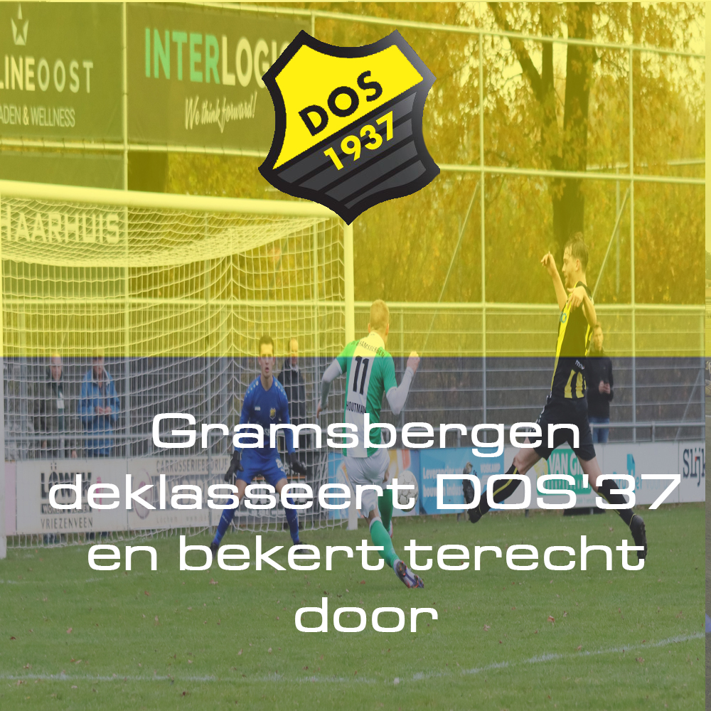 Om te zeggen dat DOS'37 een dag had met een niet te best optreden, deed het resultaat van de uitspelende ploeg te kort. Gramsbergen was grotendeels de bovenliggende partij in dit duel. In de ogen van vele eigen supporters leverde de thuisploeg nagenoeg een wanprestatie. Dat deed niets af aan het feit, dat de basisopstelling geheel anders was dan gebruikelijk. DOS'37 moest afscheid nemen van het bekertoernooi. Ook al verzuimde Gramsbergen de score nog hoger te laten uitvallen, het team uit de tweede klasse J Noord plaatste zich verdiend en terecht voor de volgende ronde.
