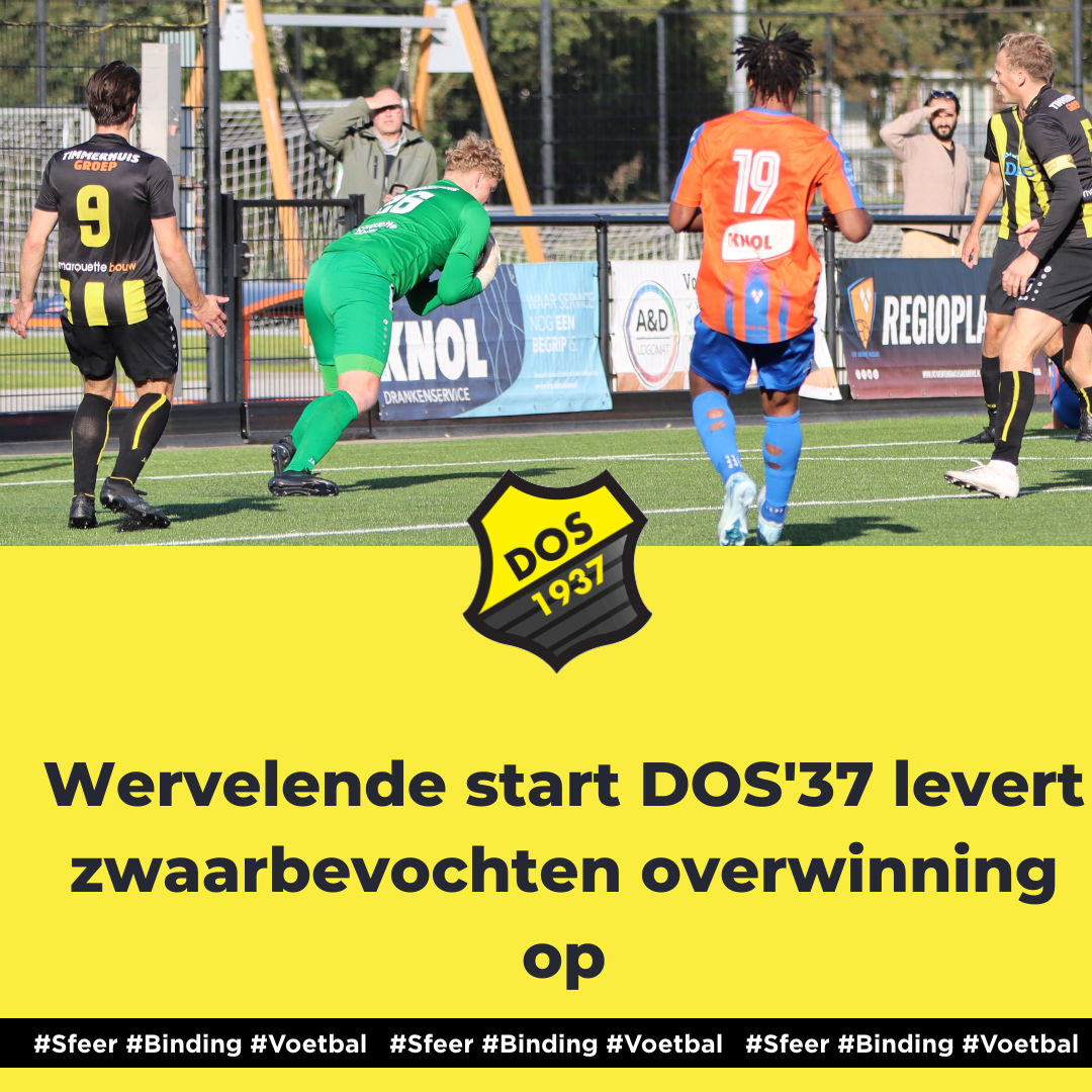 Met zes punten uit twee wedstrijden blijft DOS'37 bovenaan in de tweede klasse H. De vele DOS-supporters zagen wederom mooie dingen van hun vlaggenschip, maar het kan nog wel wat beter voor de mannen van Gerard Kocks en Wilmar Nieuwenhuis, met name in de passing. Volgende week wacht de thuiswedstrijd tegen Rigtersbleek, die om 14:30 uur zal plaatsvinden op sportpark Het Midden. DOS’37 hoopt de goede reeks voort te zetten en wederom drie punten te pakken.
